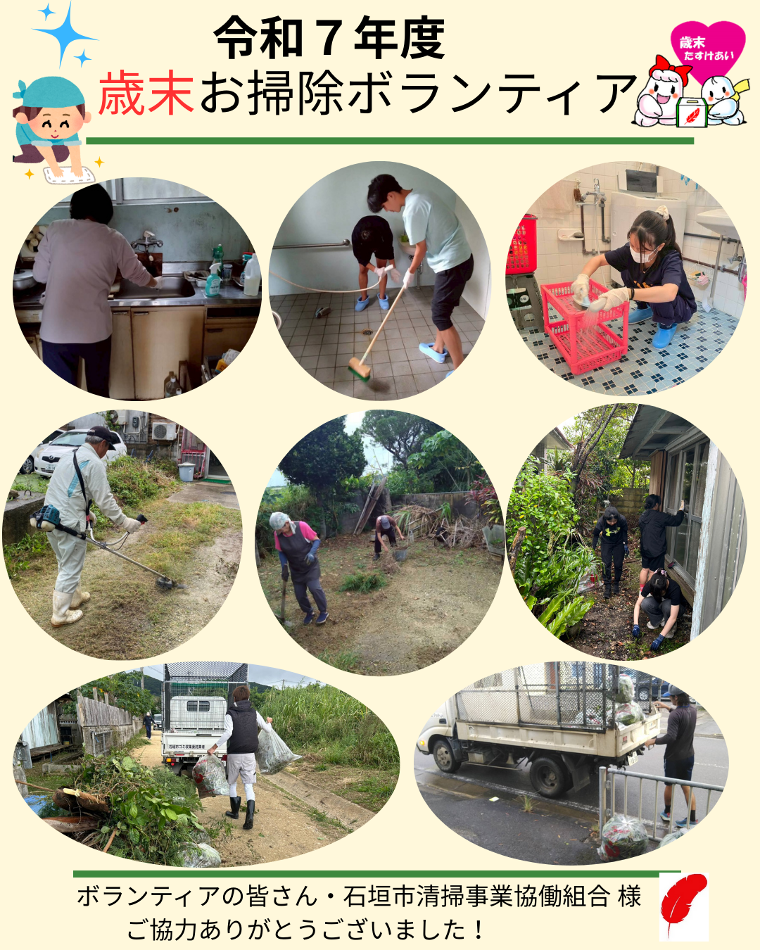 当日は、あいにくの雨でしたが、無事に各世帯で活動する事ができました。活動終了後には、居住者の方へしめ縄をプレゼントし「とても助かりました、ありがとう」と感謝の言葉をいただきました。
